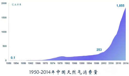 天然氣是最高效、清潔的化石能源,我國天然氣消費(fèi)從建國時(shí)期的0.1億立方米增至2014年的1855億立方米,增長了1800多倍。